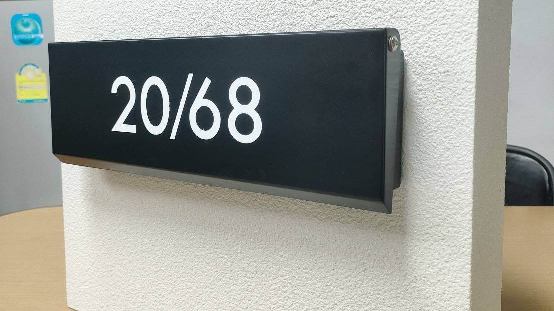 ➡️ ใส่จดหมายด้านหน้า, เปิดรับจดหมายด้านหลัง, ด้านหลังมีกระจกเพื่อให้มองเห็นด้านใน