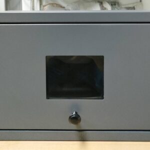 ใส่จดหมายด้านหน้า, เปิดรับจดหมายด้านหลัง, ด้านหลังมีกระจกเพื่อให้มองเห็นด้านใน