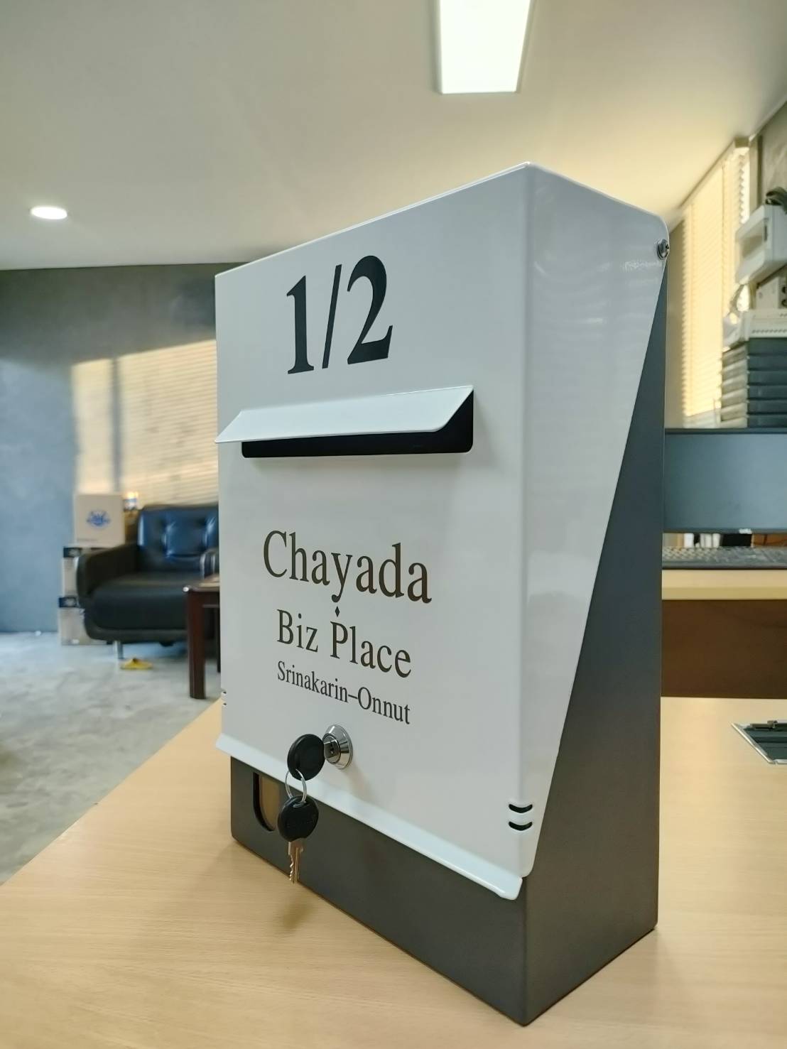 ➡️ ใส่จดหมายด้านหน้า, เปิดรับจดหมายด้านหน้า, ด้านหน้ามีกระจกเพื่อให้มองเห็นด้านใน
