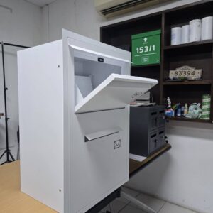 ใส่จดหมายและพัสดุด้านหน้า, เปิดรับด้านหลัง, ด้านหลังมีกระจกเพื่อให้มองเห็นด้านใน